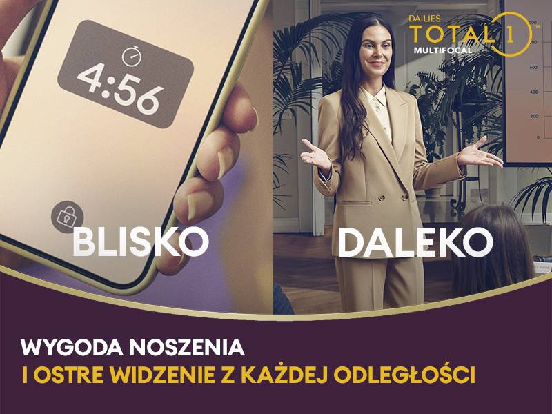 doskonała tolerancja soczewki zapewniająca komfort widzenia na każdą odległość.